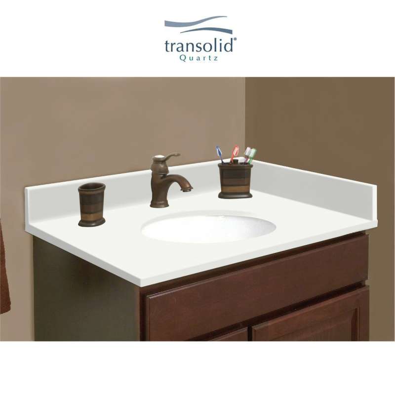 They say home is where the heart is - so why not create a special place to enjoy for years to come? With Transolid quartz vanity tops you'll experience a captivating and energizing color palette. Quartz is a nonporous surface that prevents unwelcome germs, bacteria, and mildew. Easy to maintain and clean. Lustrous surface that doesn't require sealing, conditioning or polishing and is scratch, heat, and stain resistant. Each Transolid quartz vanity top includes reversible sidesplash and loose backsplash.